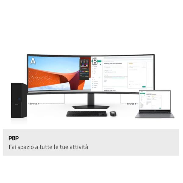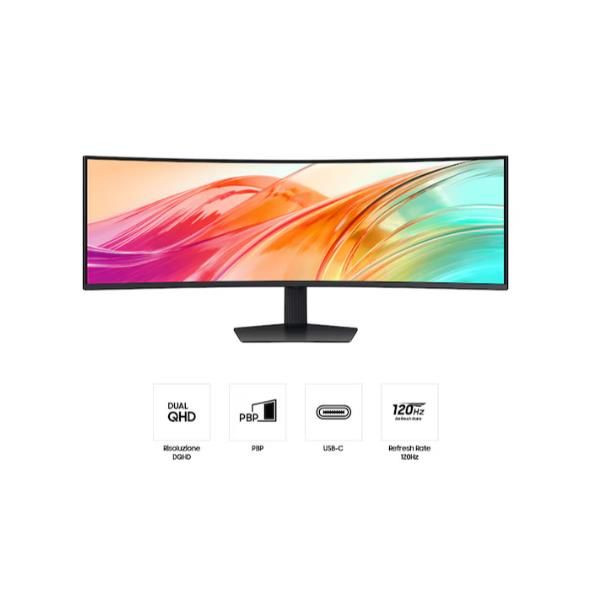 Aumenta la produttività immergendoti completamente nei tuoi progetti: il display da 49" con curvatura 1000R ti avvolge con un rapporto d’aspetto di 32:9 adattandosi perfettamente al tuo campo visivo. Con uno schermo Dual QHD così ampio, puoi osservare il quadro completo e produrre di più, senza rinunciare al comfort.